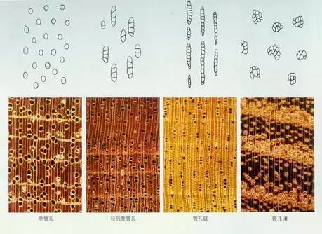 径列复管孔:大多数或全部管孔为2-4个或4个以上沿径向相连排列。如椴木等。