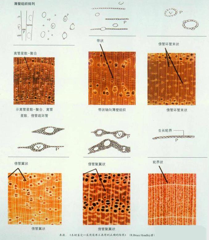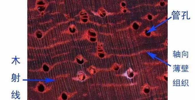 木材可分为阔叶材(如红木类)和针叶材(松、杉类),其中针叶材的结构比较简单。以下的特征图片主要来源于阔叶材: