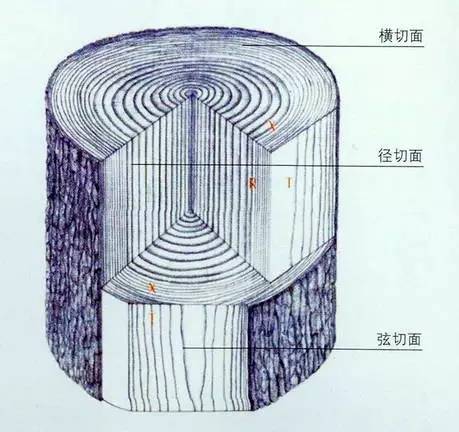 另外,我们观察木材的构造,了解木材的性能,都可以通过三个切面反映出来。